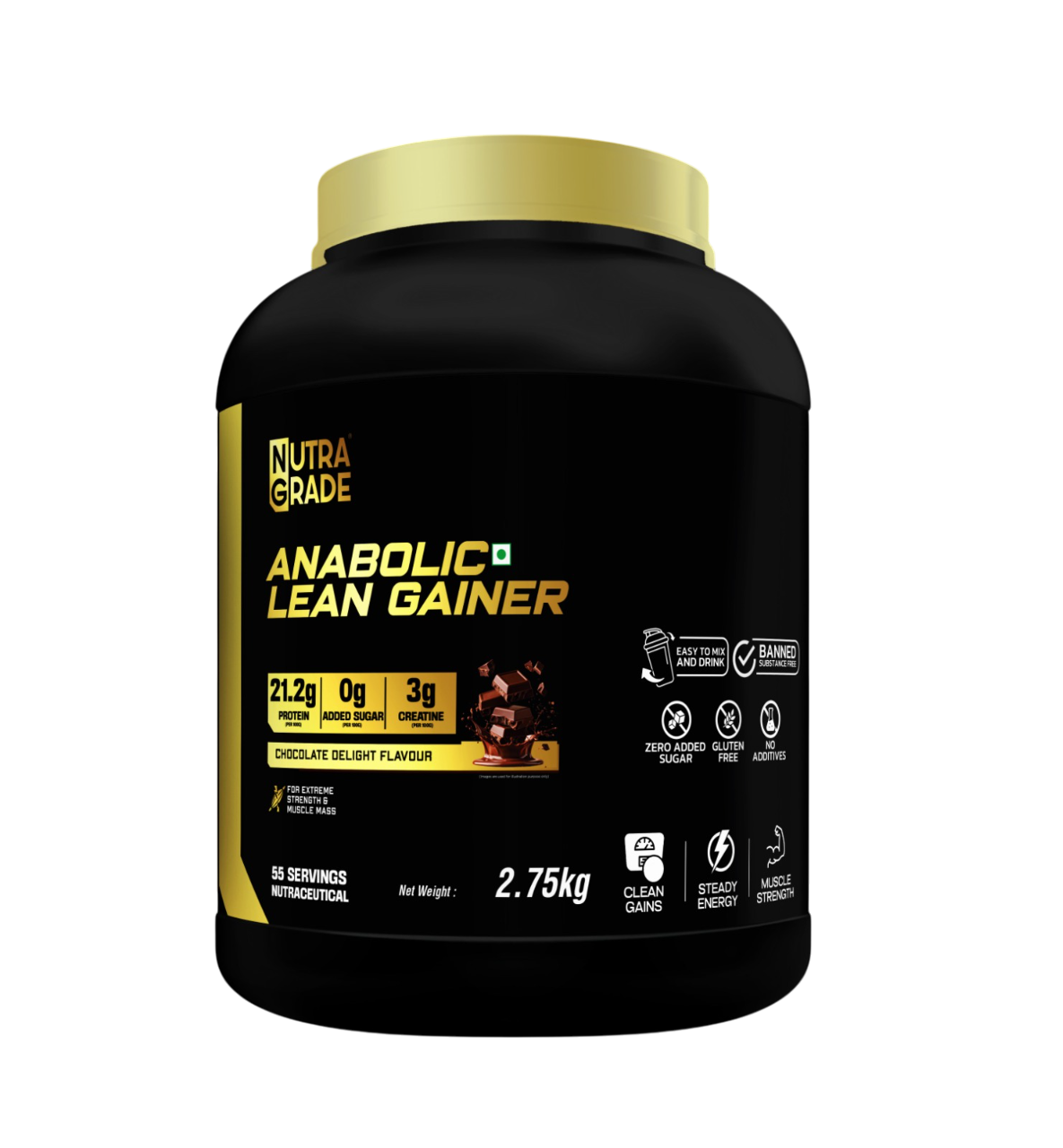 A clean and powerful lean gainer designed to support muscle growth without unwanted fat. Each 100g serving delivers 21.2g protein, 3g creatine, and 0g added sugar. Perfect for athletes looking for steady energy, improved strength, and lean muscle development. Smooth Chocolate Delight flavour and easy-to-mix formula.